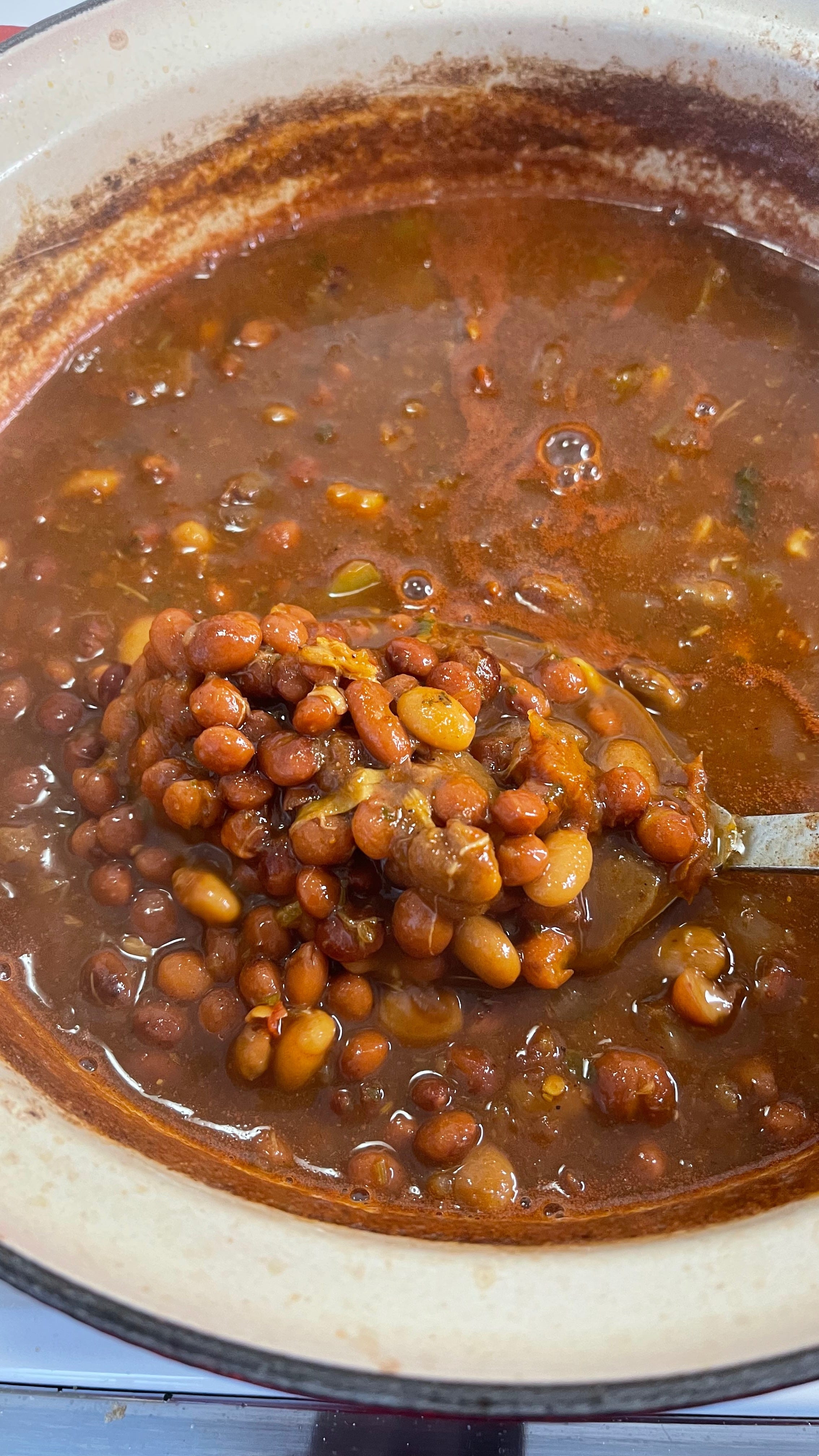 I tried to create a baked bean dish that had enough balance of sweetness, but bold flavor. And of course I couldn’t leave the sofrito and the adobo out.