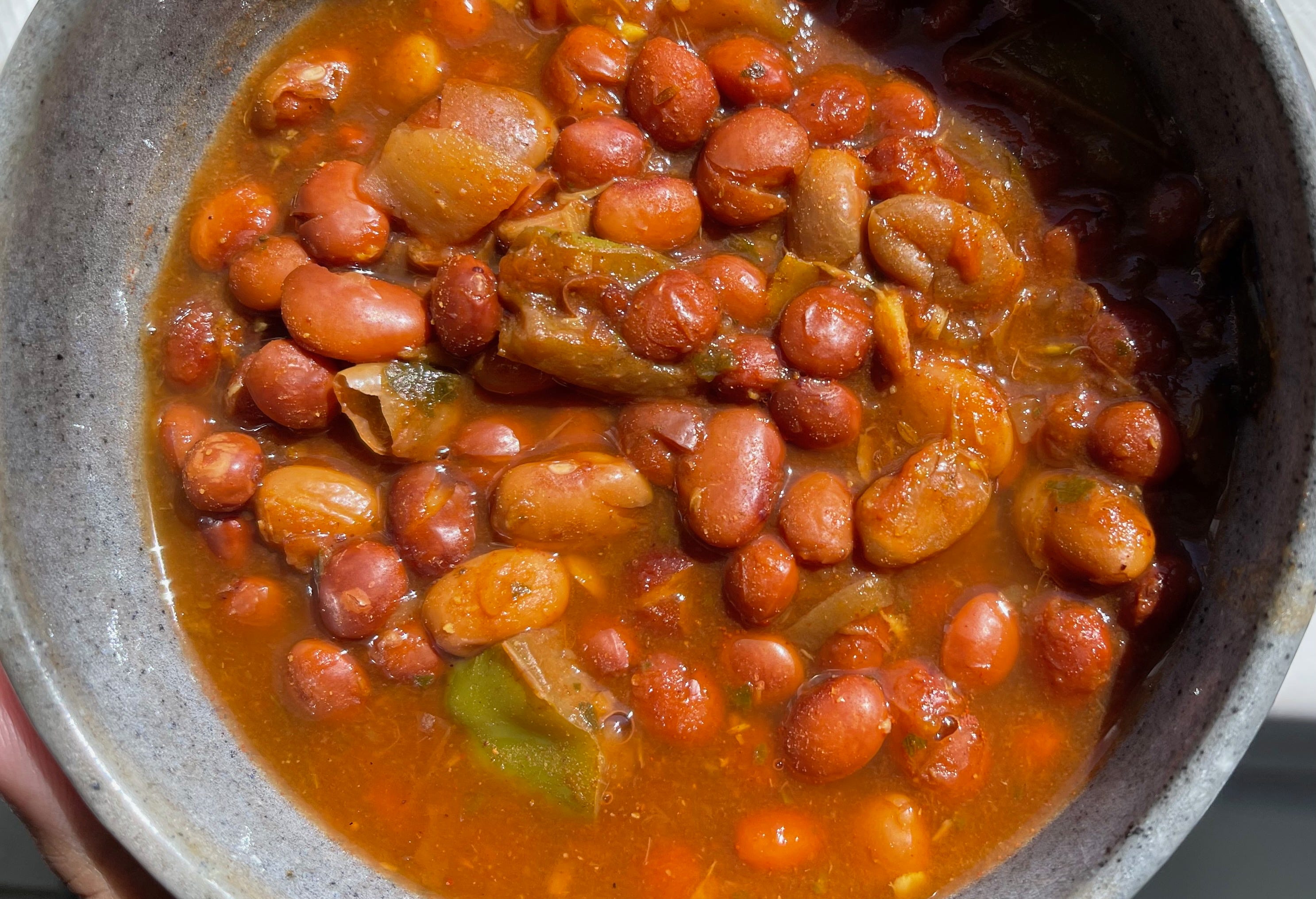 Pinquitos beans are tiny, condensed (they remain firm even after a long cook), and create this intense and dark broth. So, if you read a recipe that tells you to drain the water, only to replenish with fresh water, they’ve obviously have never encountered a pinquito. It’s a bean that is an essential part of California cuisine, a bean that was originally brought from Mexico and now widely grown in the California Central Coast, but became Santa Maria tri-tip’s quintessential companion.