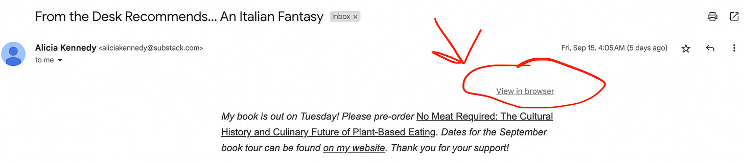Did you know that if you read the newsletter within the app or “view in browser” that you’ll be reading the most recent version of my newsletter? Even after I press publish I’ll make changes because I notice things are a little off, or I’ve forgotten something. Since Substack is not WYSIWYG, like MailChimp, the version in your inbox is not always the most recent version.